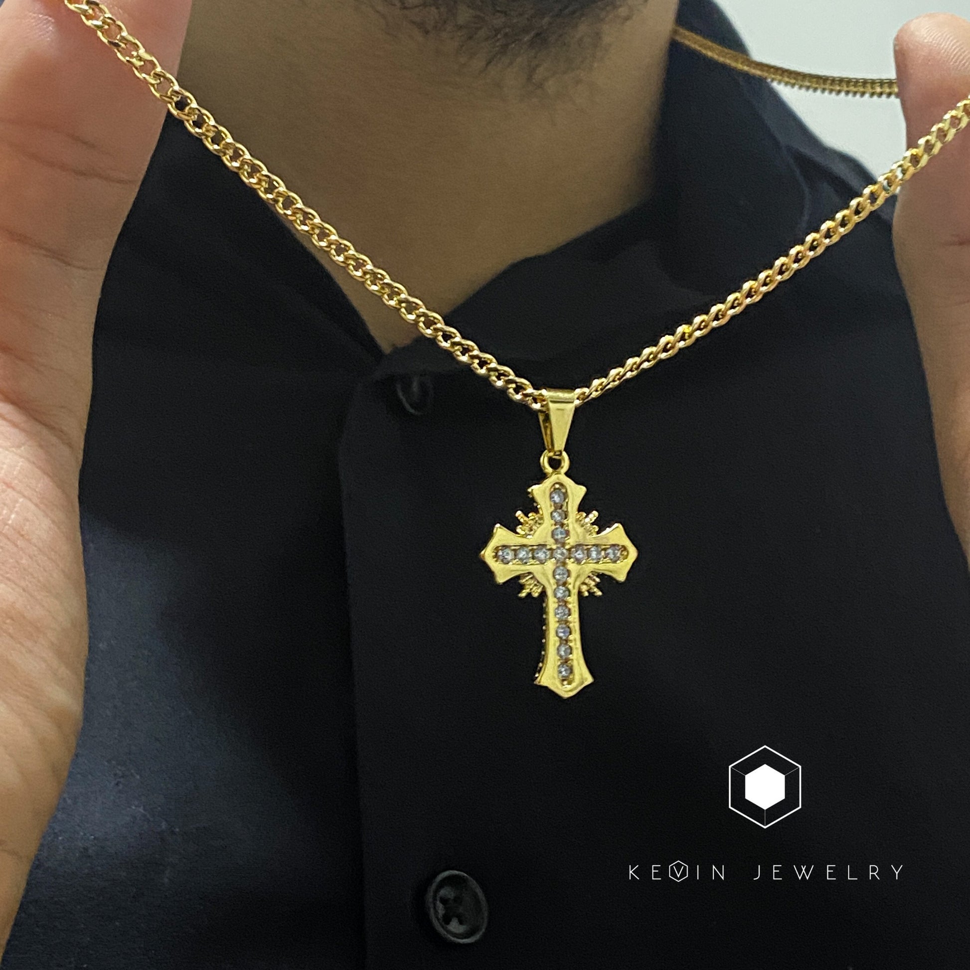 Cadena Cubana Sencilla 60cm + Colgante Cruz Sagrada