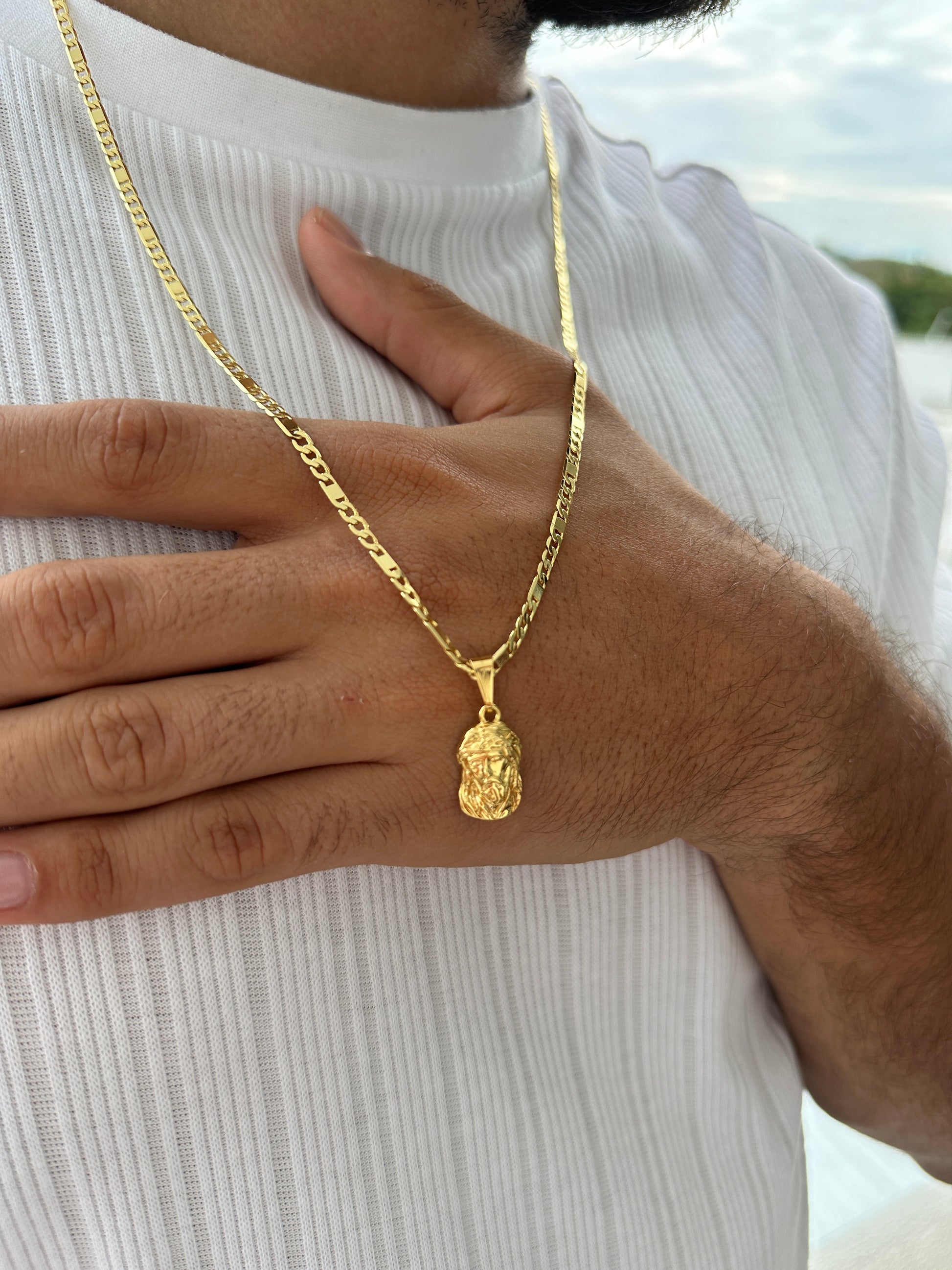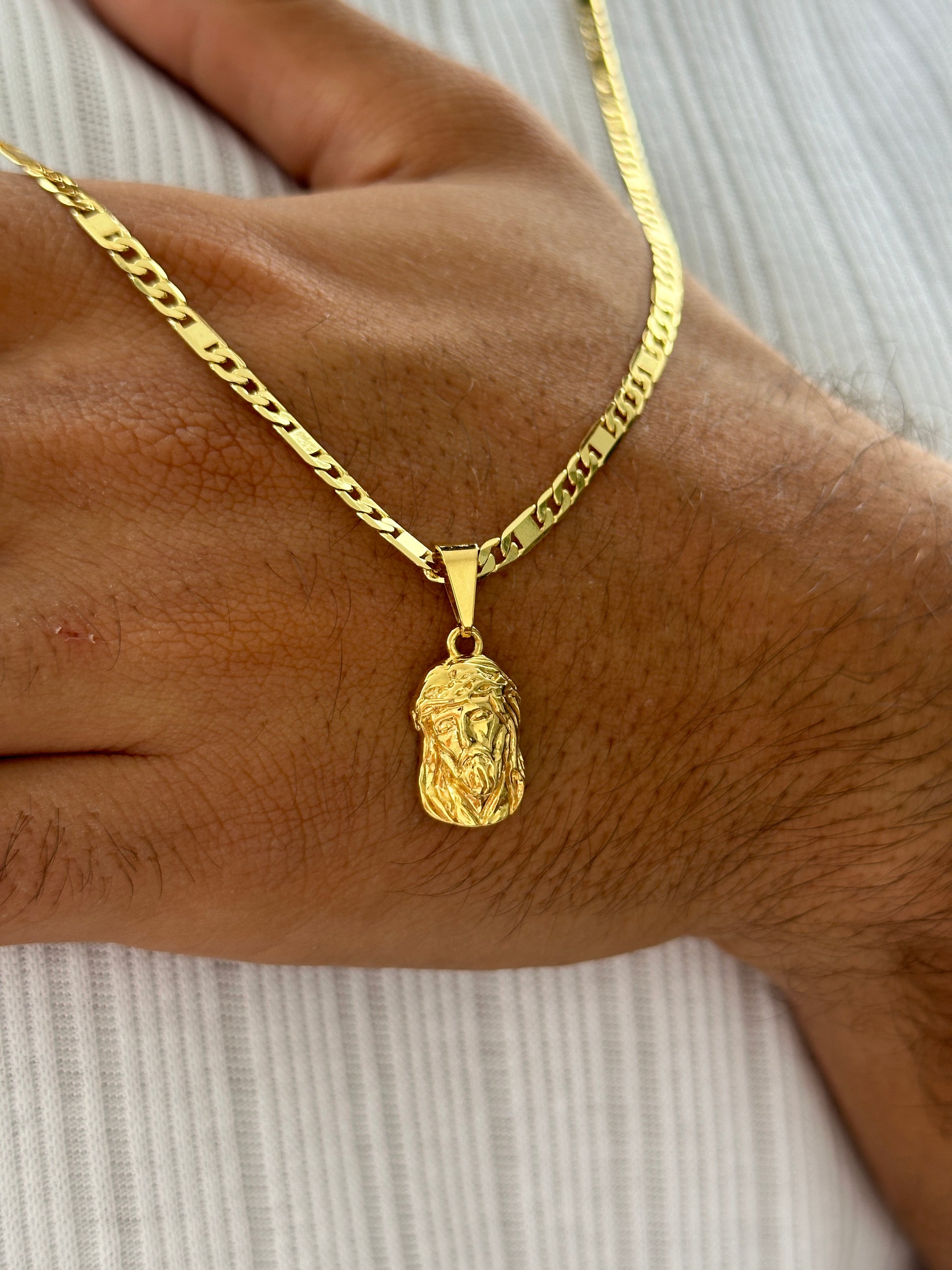 Cadena Escalera y Cubana 60cm + Colgante Rostro Tallado