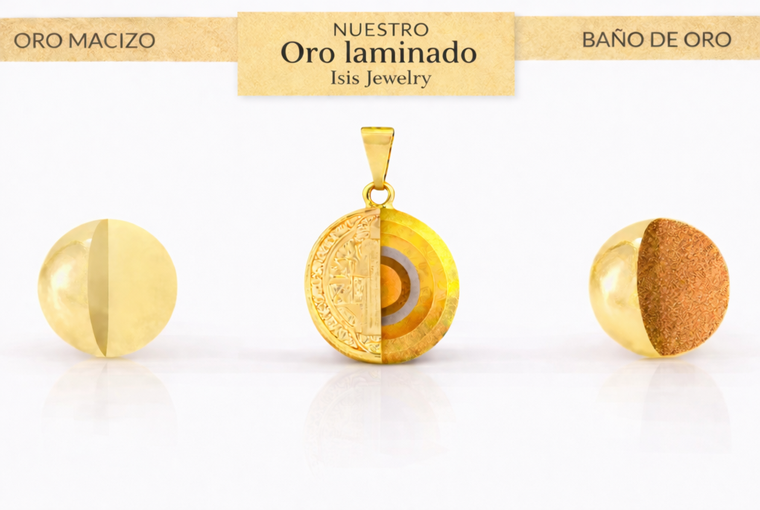 Nuestras joyas están elaboradas en oro laminado de 18K, con un proceso de alta calidad que mantiene el mismo tono del oro macizo.