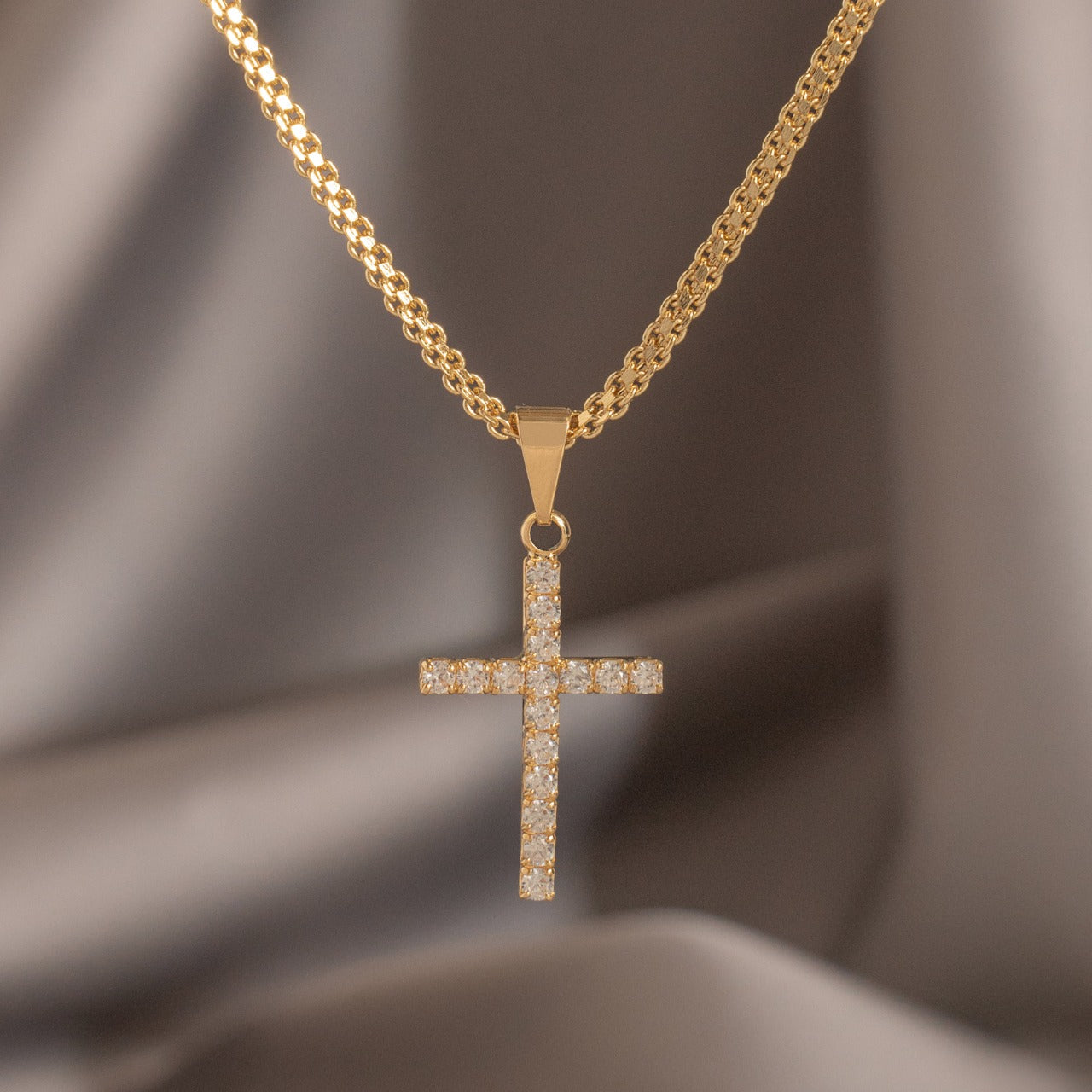 Cadena Chinesca 45cm + Colgante Cruz Piedras