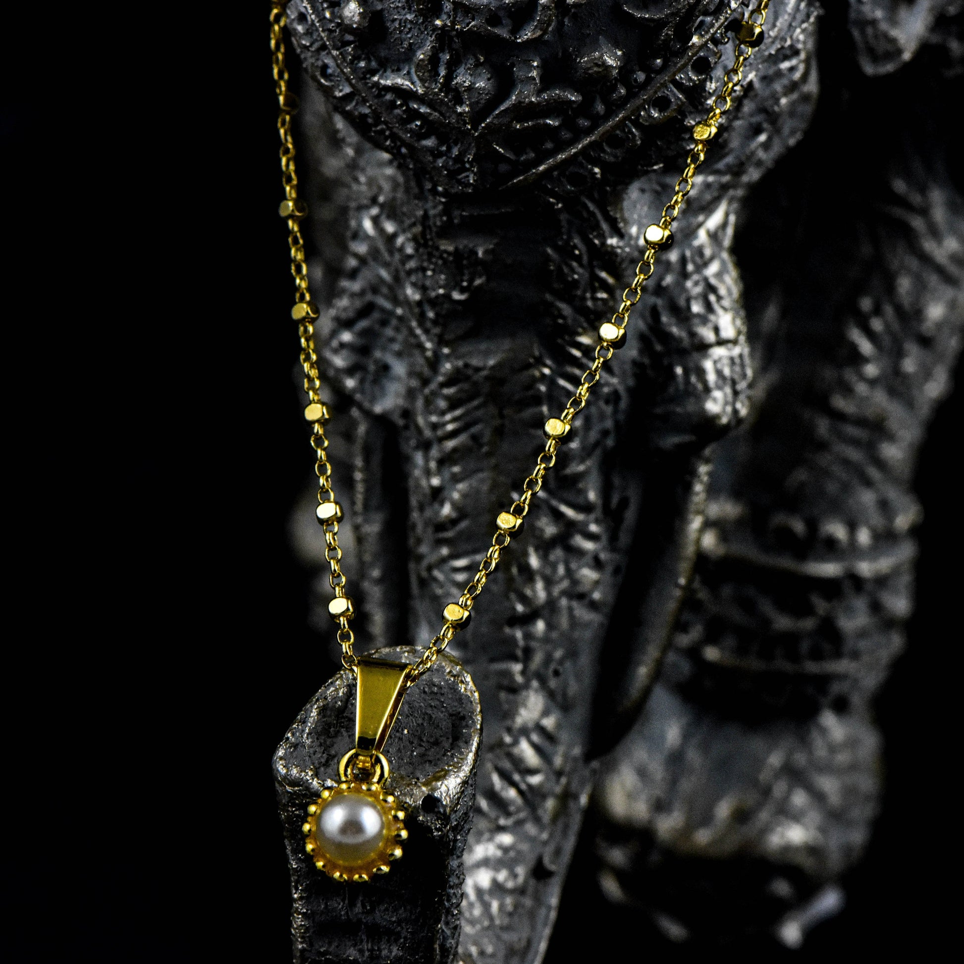 Cadena Aros Cuadrados 45 cm + Colgante Perla Redondo Mini
