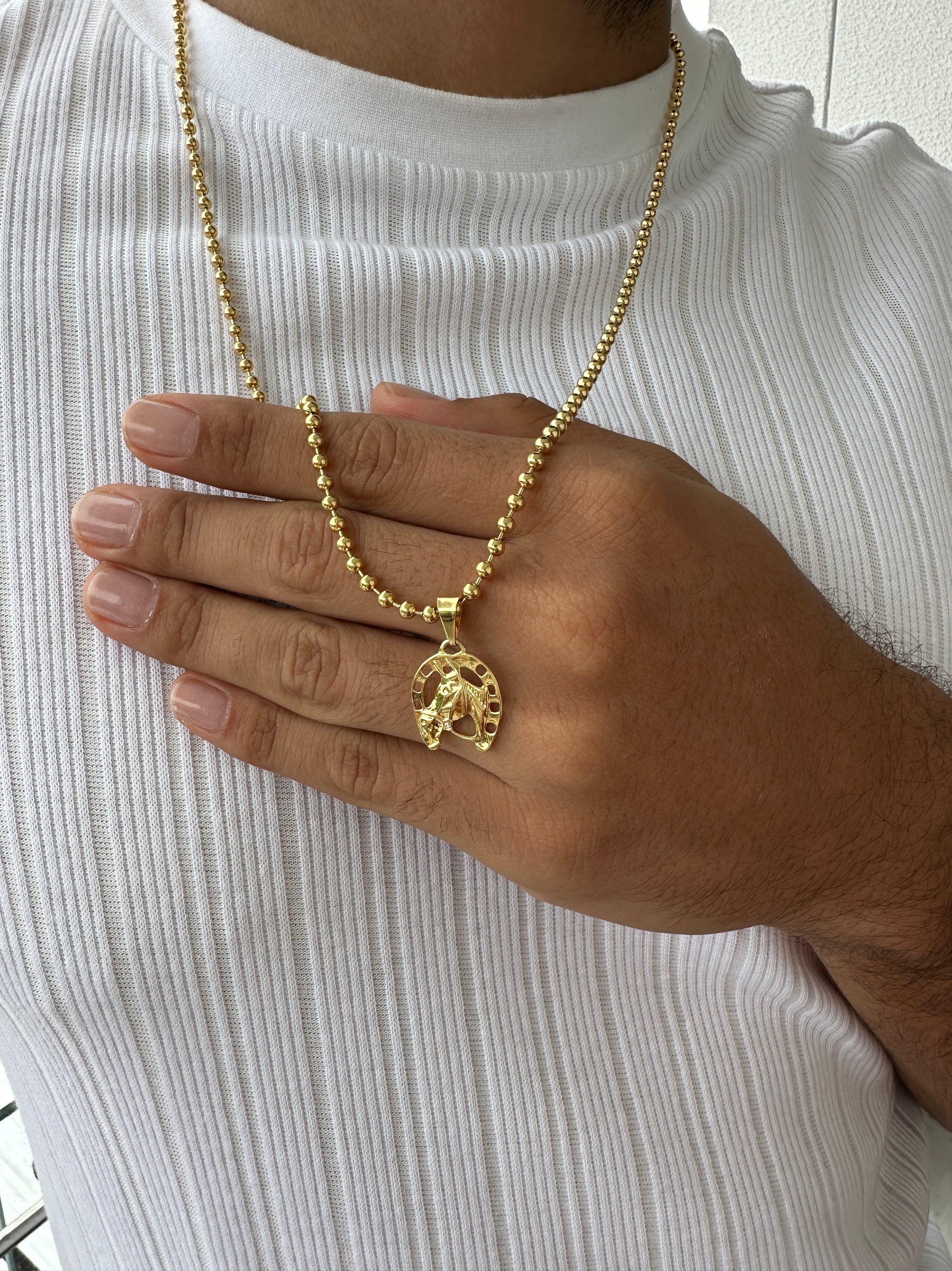 Cadena Militar 65cm + Colgante Caballo con Herradura